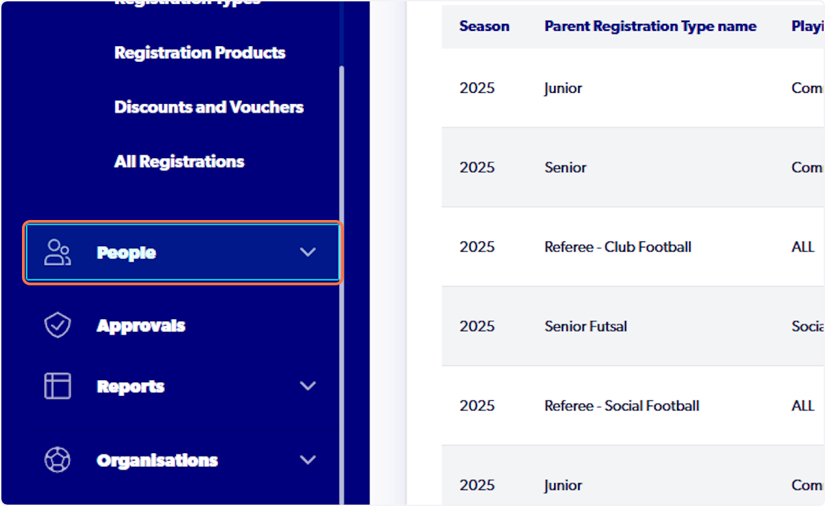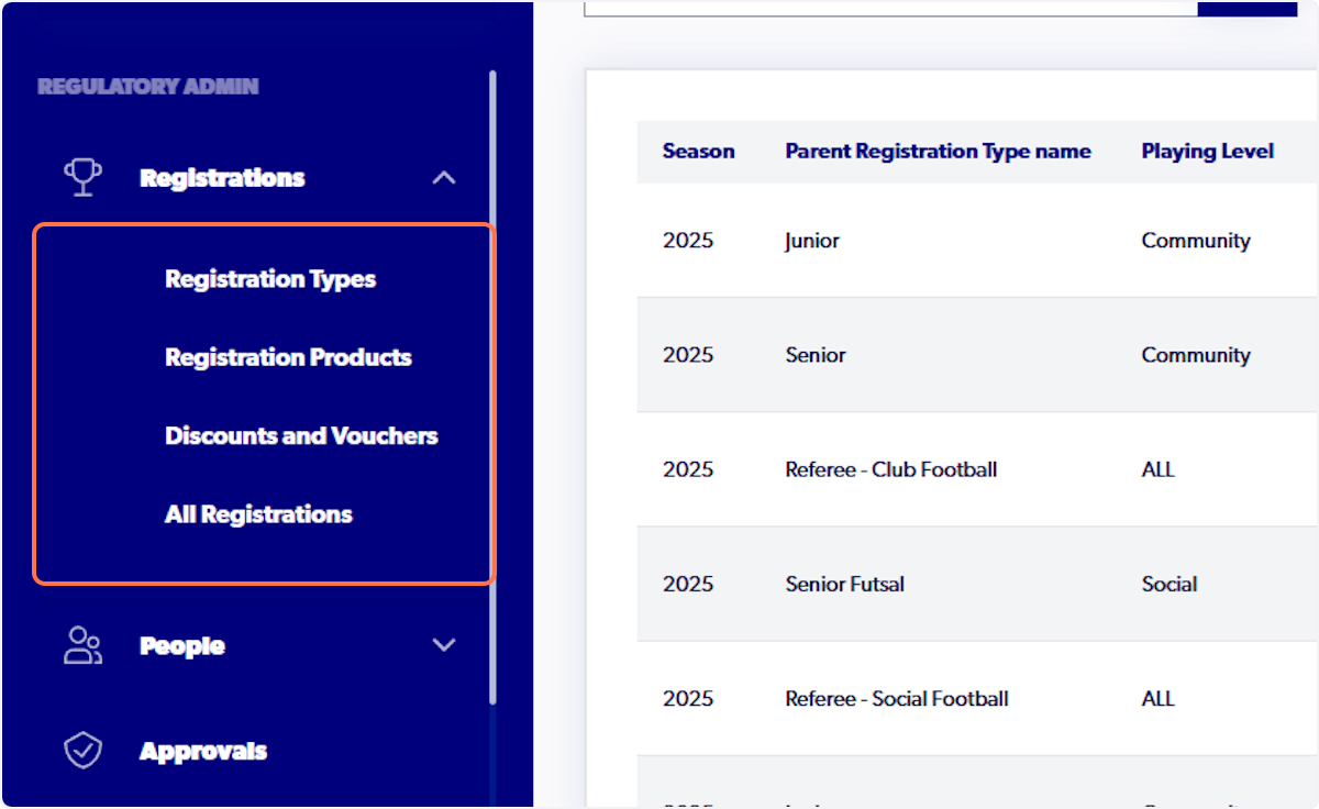 1. Registrations Menu - Click on "Registrations" to expand the menu