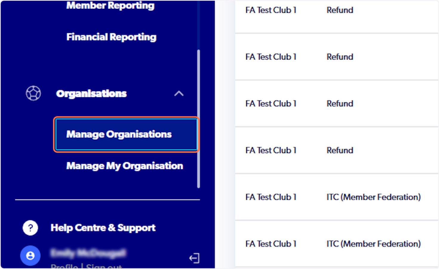This is where you; "Manage Organisation" and "Manage My Organisation"
