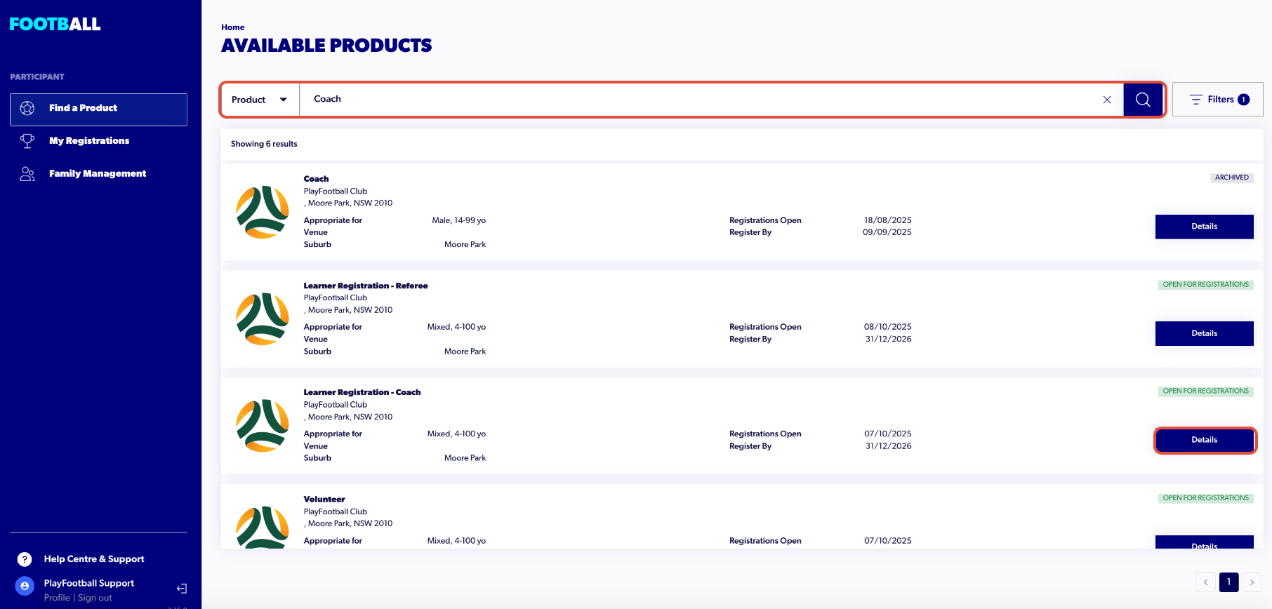1. Go to playfootball.com.au and select Re-Registering to Play this Season