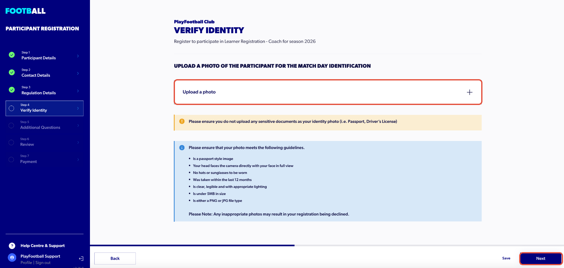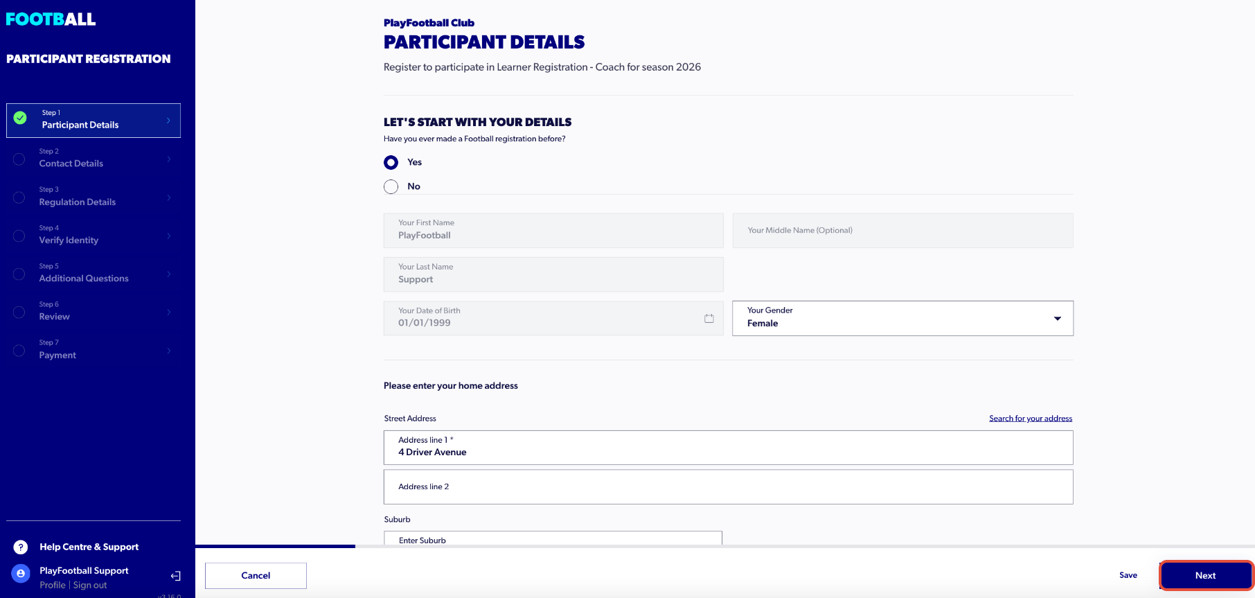 8. Fill out the participant details and select ‘Next’ at the bottom of the page.