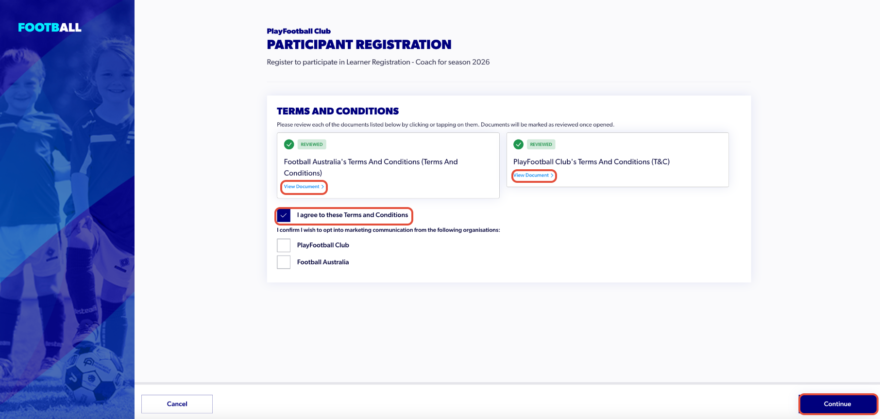 7. Review and agree to the Terms and Conditions and select ‘Continue’ and the bottom of the page.