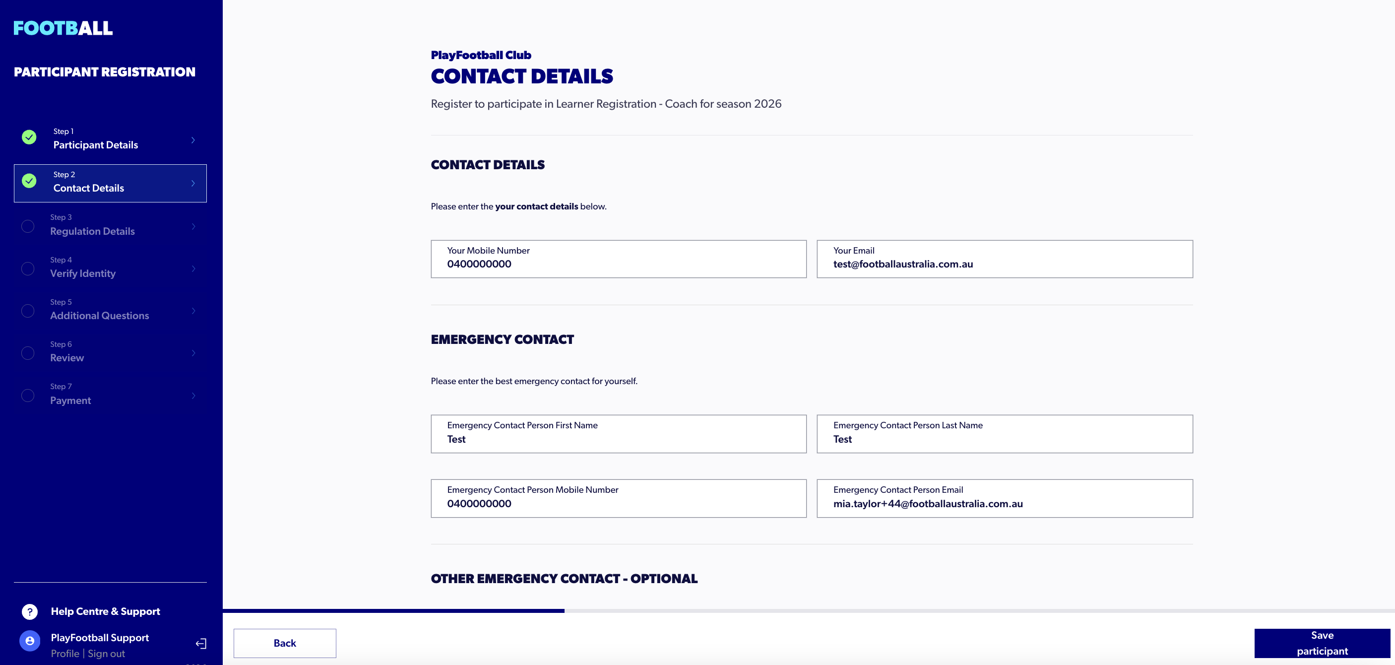 9. Continue with the contact details and select ‘Save Participant’ at the bottom of the page.