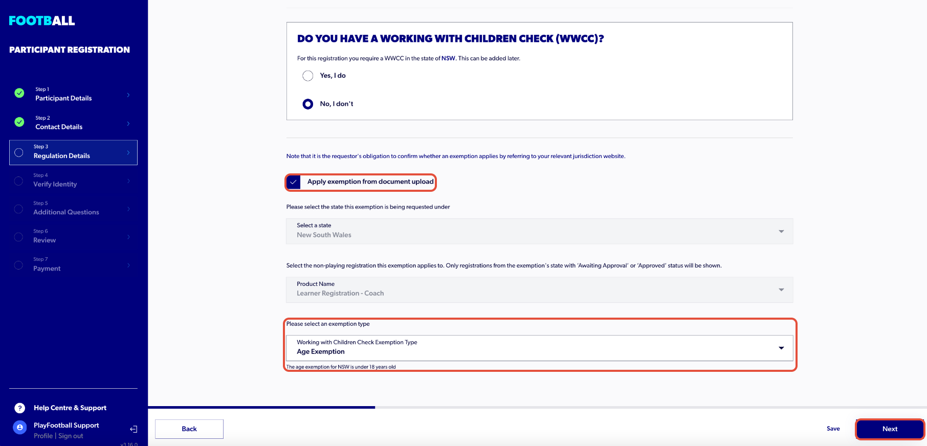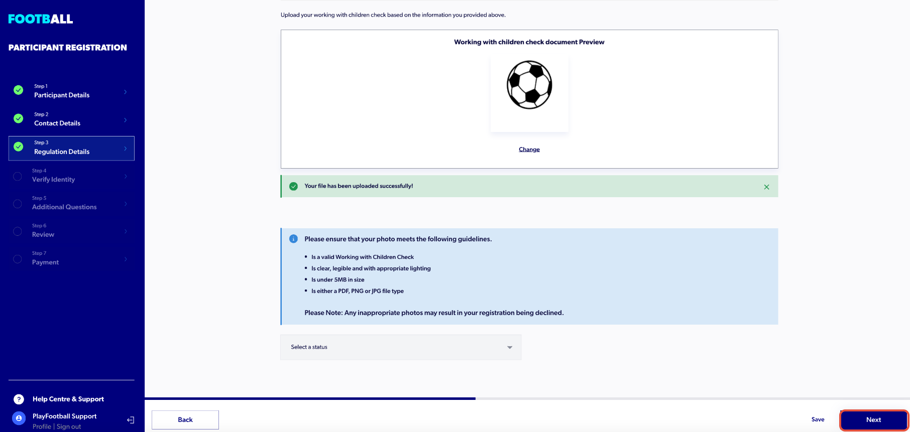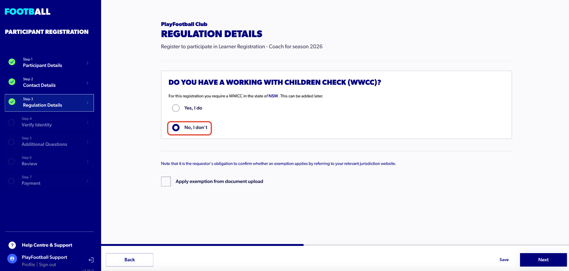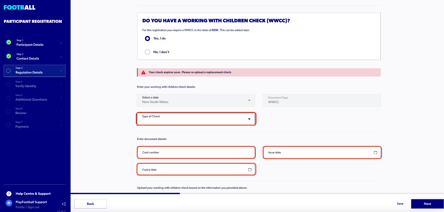 *Participants who have now uploaded a Working With Children Check skip ahead to Step 17*