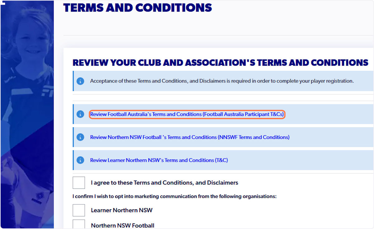 10. Click on Review Football Australia's Terms and Conditions (Football Australia Participant T&Cs)