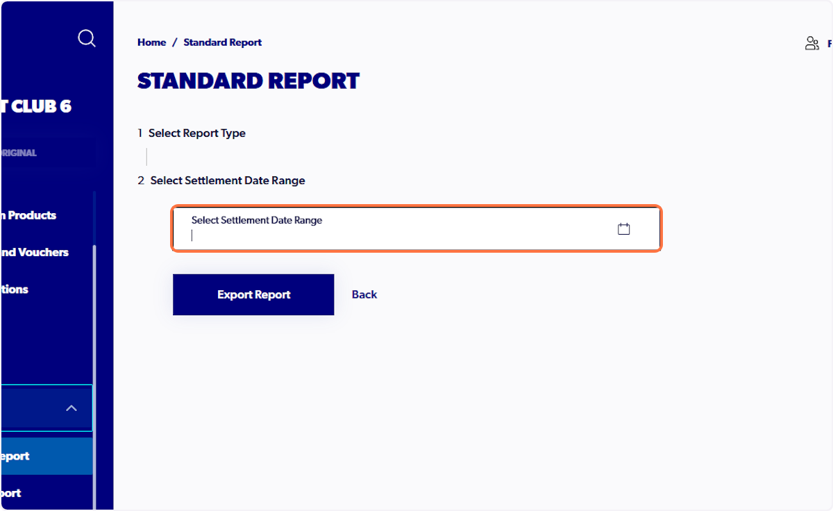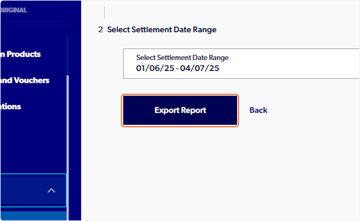 6. Click on Select Settlement Date Range and set the date range