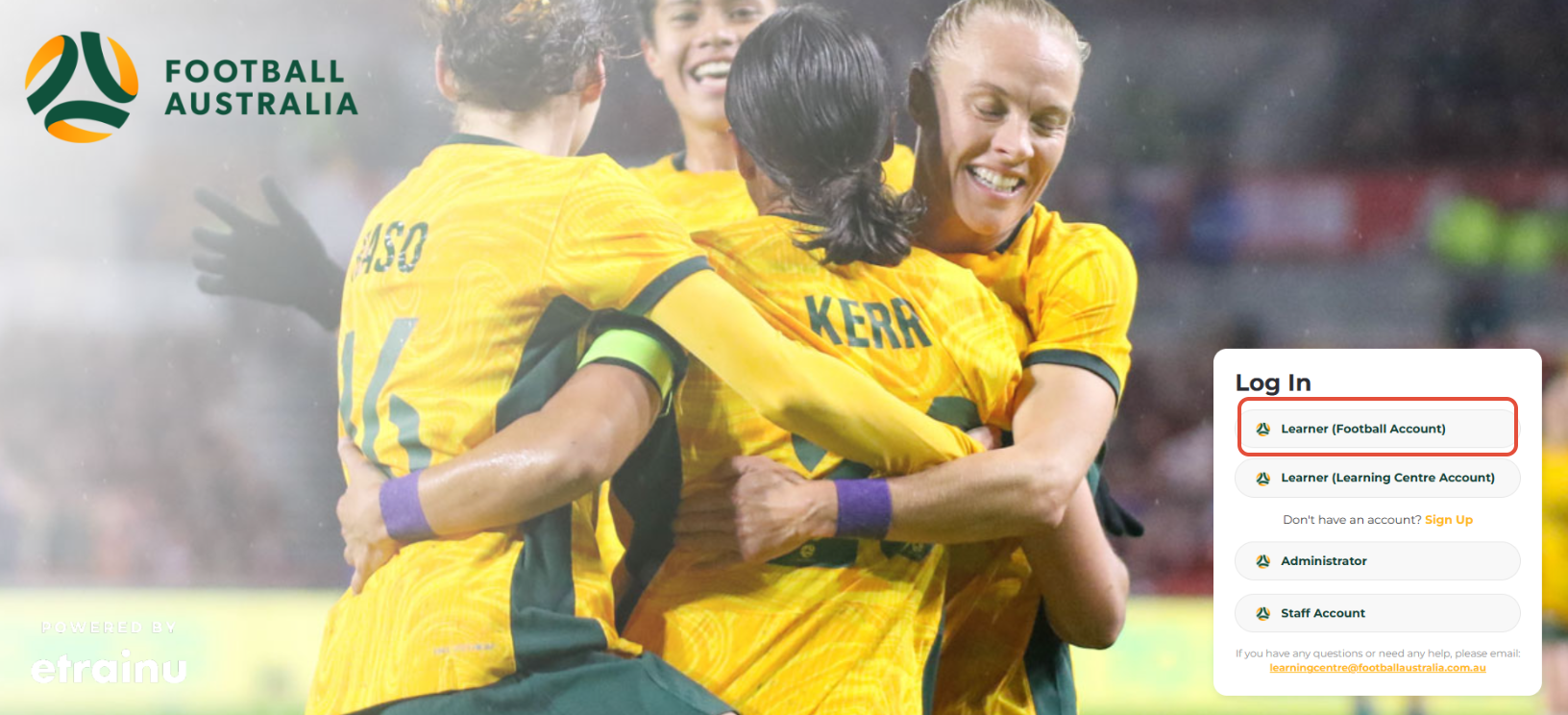 Use this link to access the Learning Centre - https://learn.footballaustralia.com.au/training/index.cfm?event=page.login