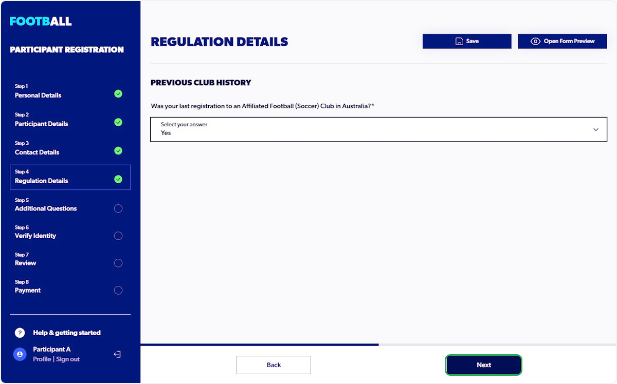 19. Select your answer to the Regulation Details question and Click On "Next"
